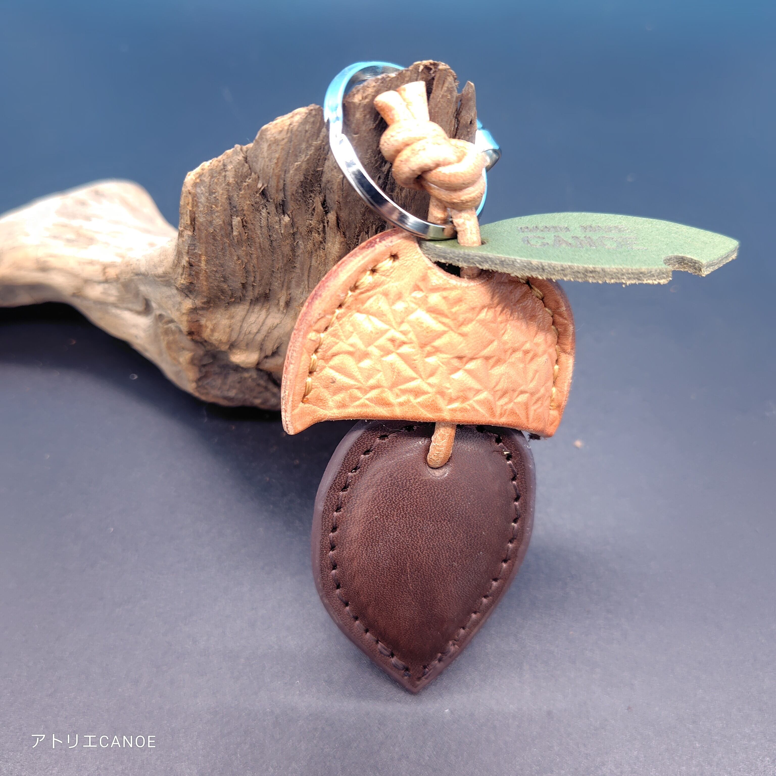 本体5㎝時×7㎝ 牛革製 キーリング+ナスフック2ヶ